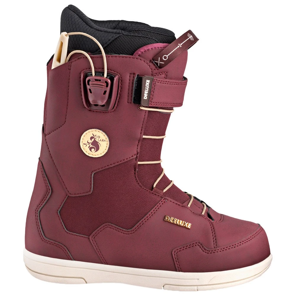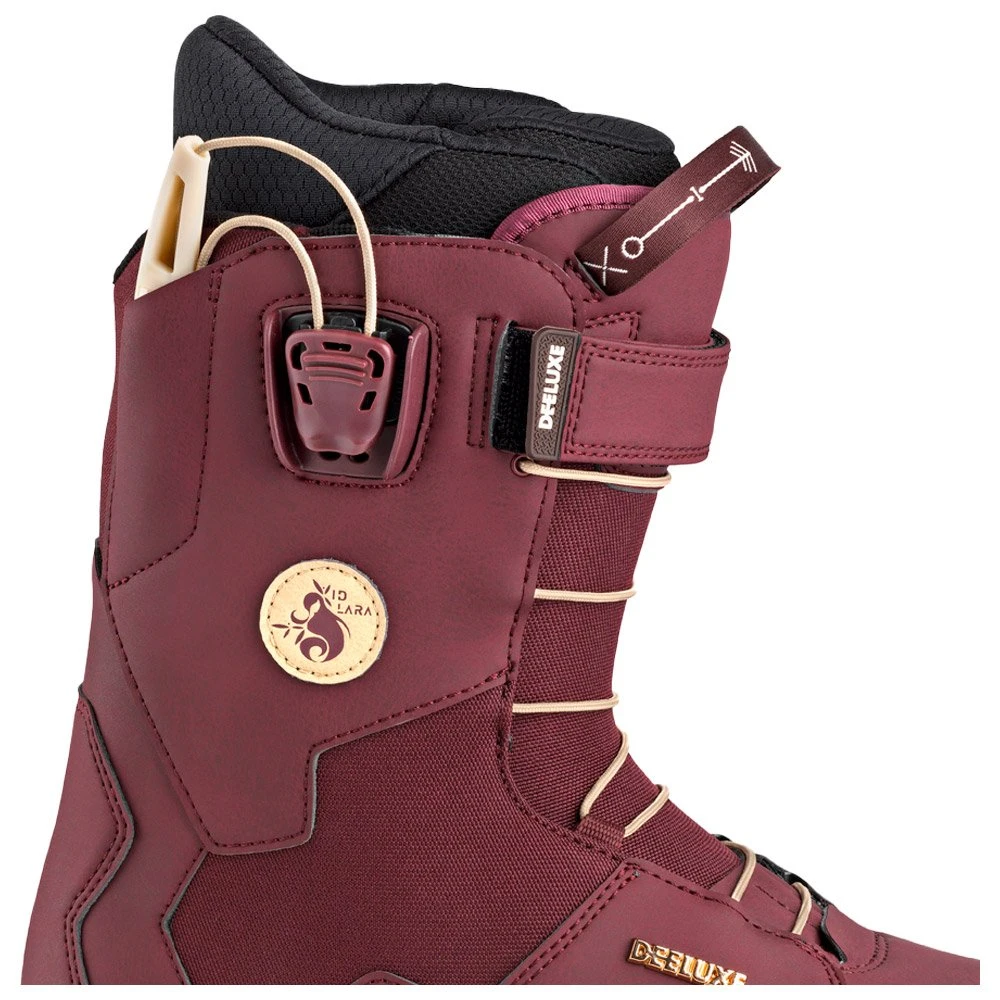 La Deeluxe ID Lara Burgund est une botte de snowboard femme typée freestyle/all-mountain. Son flex de 4/10 offre la jouabilité nécessaire pour se sentir à l’aise en freestyle, que cela soit pour s’amuser sur les bosses des bords de pistes ou pour travailler les tricks de jib sur les modules du park. Si vous êtes plutôt du genre à simplement profiter des descentes sur les pistes, pas de problème. Son compromis réactivité/accessibilité la rend très agréable à rider et on enchaîne les virages sans difficulté. Le serrage rapide L3 et le strap en haut de la tige apportent du maintien et de la précision. Enfin, pour encore plus de confort, la technologie Thermoblock permet d’avoir plus de chaleur dans la chaussure, pour ne plus craindre le froid pendant que vous ridez !