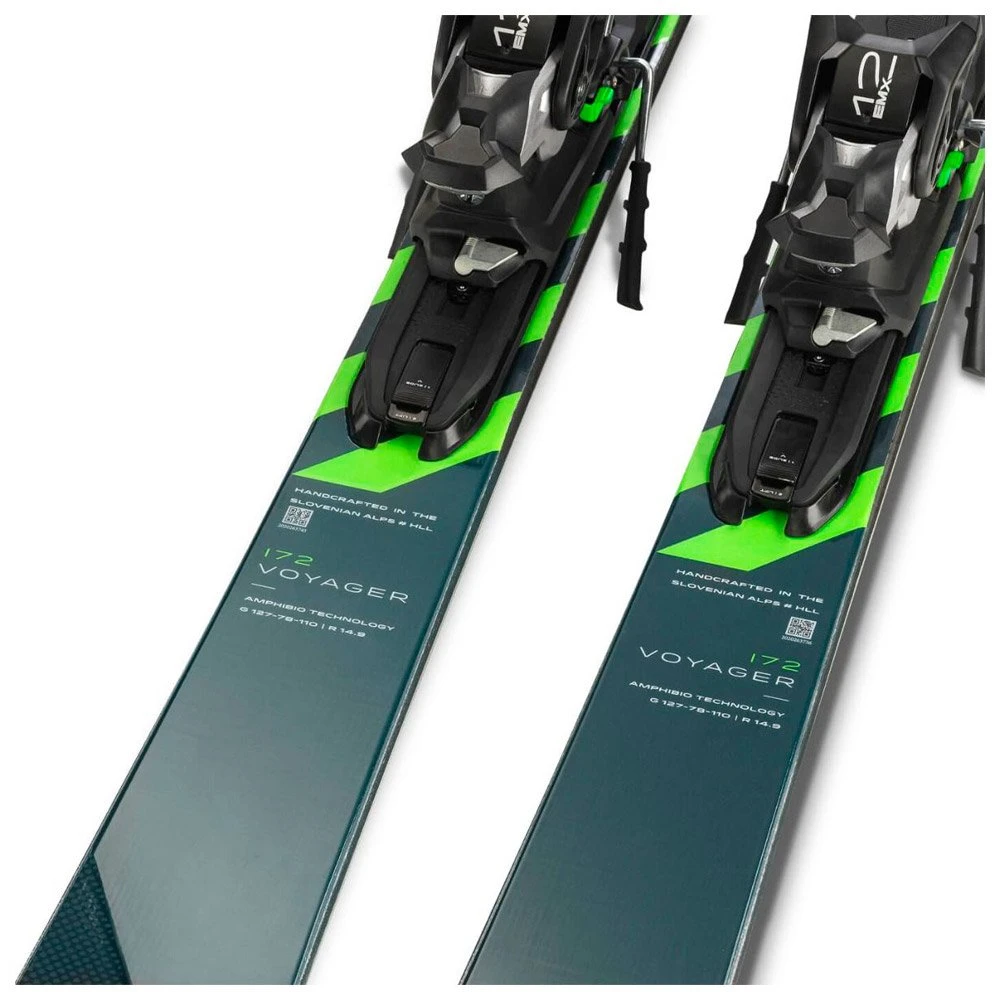 Le Voyager est un modèle très pratique qui permet de se faire plaisir avec un ski confortable à piloter et bien plus pratique à transporter que les modèles classiques. Fini le temps où il fallait faire attention aux autres piétons avec ses skis sur une épaule endolorie par les carres. Place au ski moderne ! Sous le capot, on retrouve un noyau en bois laminés avec une couche en titanal pour un pop tonique, un bon amorti des vibrations et une grande stabilité à haute vitesse. Le profil asymétrique Amphibio avec rocker à l’avant facilite les entrées de courbes et offre une meilleure précision dans les virages, tandis que les chants RST améliorent la transmission de l’énergie vers les carres. Le système Connect avec plaque Fusion et carbone renforcé permettent au ski de se plier, tout en conservant d’excellentes performances une fois déplié. Ce modèle est fourni avec la fixation Emx 12.0 Gw pour une synergie parfaite entre le ski et sa fixation, ainsi qu’une transmission de puissance optimale.